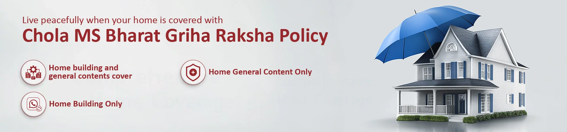 Chola MS Bharat Griha Raksha Policy is a comprehensive insurance cover that protects your home building and contents against fire and other allied perils.