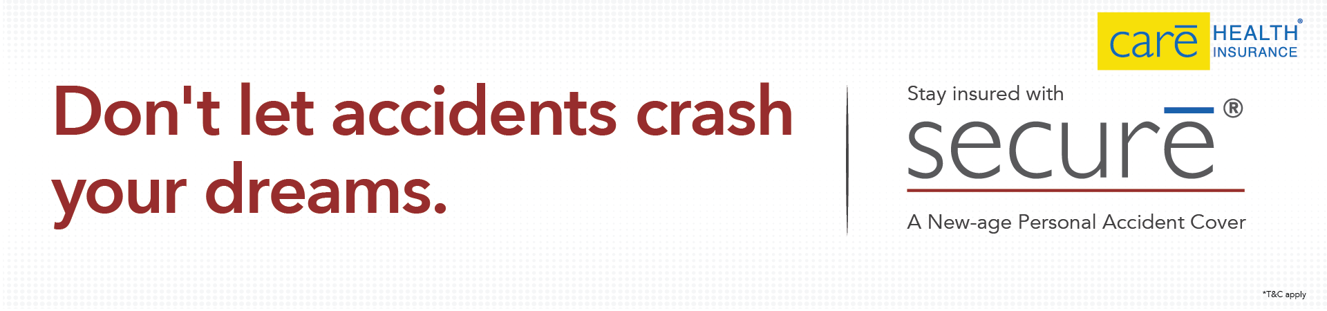 ^Other Plans/Sum Insured are also available. ** Considering 200% of SI payable in case of Accidental Death due to Common carrier mishap (Optional cover). *** Optional Cover is available on payment of additional premium. Benefits might vary as per the plan chosen. * Considering 100% of SI payable each in case of Permanent Total Disability (PTD), PTD improvement (Optional cover - Coverage amount is equivalent to base Sum Insured) and Common carrier mishap cover (Optional cover).